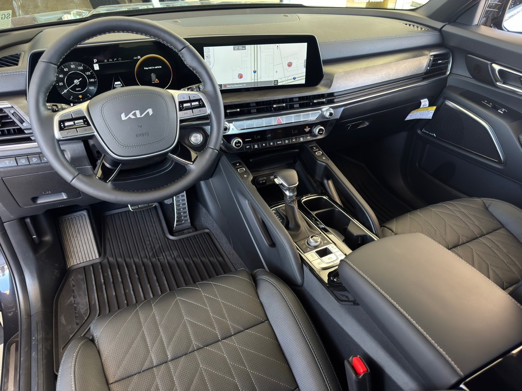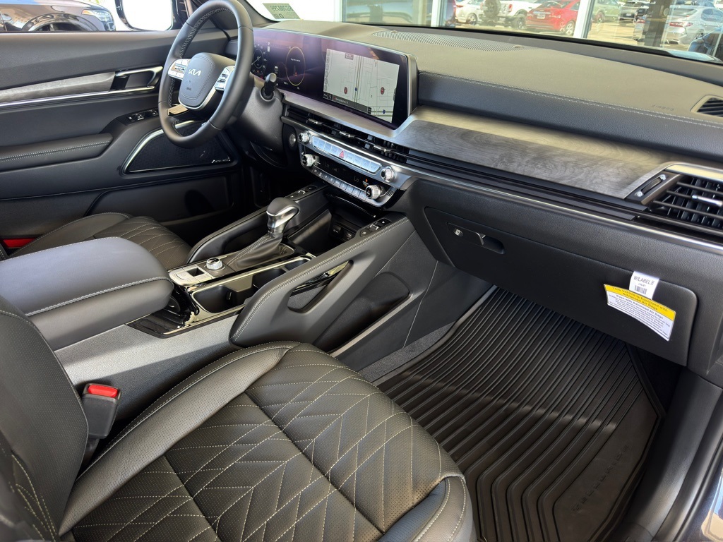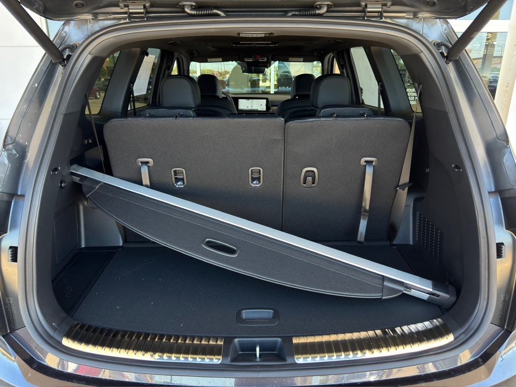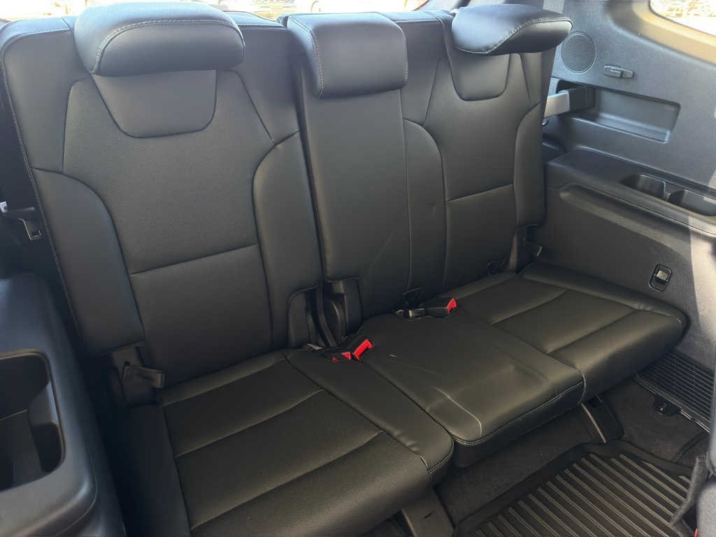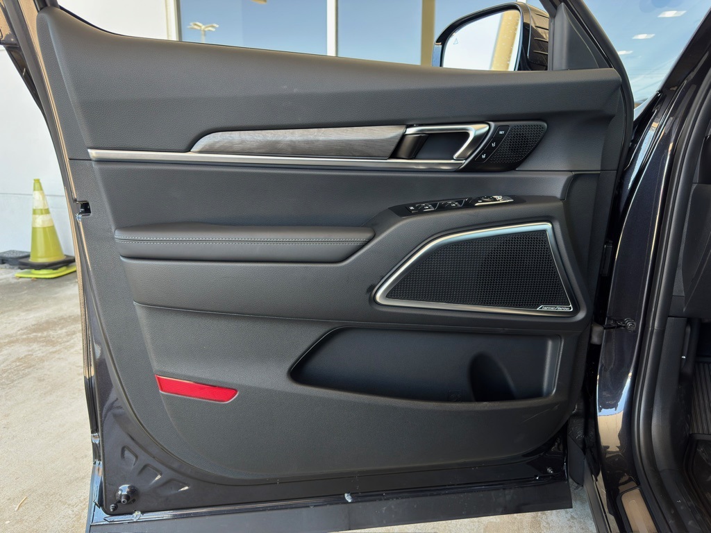 ear-View mirror, Auto-leveling suspension, Automatic temperature control, Brake assist, Bumpers: body-color, Compass, Delay-off headlights, Driver door bin, Driver vanity mirror, Dual front impact airbags, Dual front side impact airbags, Electronic Stability Control, Emergency communication system: 911 Connect, Exterior Parking Camera Rear, Four wheel independent suspension, Front anti-roll bar, Front Bucket Seats, Front Center Armrest, Front dual zone A/C, Front fog lights, Front reading lights, Fully automatic headlights, Garage door transmitter: HomeLink, harman/kardon® Speakers, Heated & Ventilated Front Bucket Seats, Heated door mirrors, Heated front seats, Heated steering wheel, Illuminated entry, Knee airbag, Leather Seat Trim, Leather Shift Knob, Leather steering wheel, Low tire pressure warning, Memory seat, Navigation System, Occupant sensing airbag, Outside temperature display, Overhead airbag, Overhead console, Panic alarm, Passenger door bin, Passenger vanity mirror, Power door mirrors, Power driver seat, Power Liftgate, Power moonroof, Power passenger seat, Power steering, Power windows, Radio data system, Radio: AM/FM Harman Kardon Audio System, Rear air conditioning, Rear anti-roll bar, Rear audio controls, Rear reading lights, Rear side impact airbag, Rear window defroster, Rear window wiper, Reclining 3rd row seat, Remote keyless entry, Security system, Speed control, Speed-sensing steering, Split folding rear seat, Spoiler, Steering wheel mounted audio controls, Tachometer, Telescoping steering wheel, Tilt steering wheel, Traction control, Trip computer, Turn signal indicator mirrors, Variably intermittent wipers, Ventilated front seats, Wheels: 20" x 7.5" Black Finish X-LINE Exclusive.