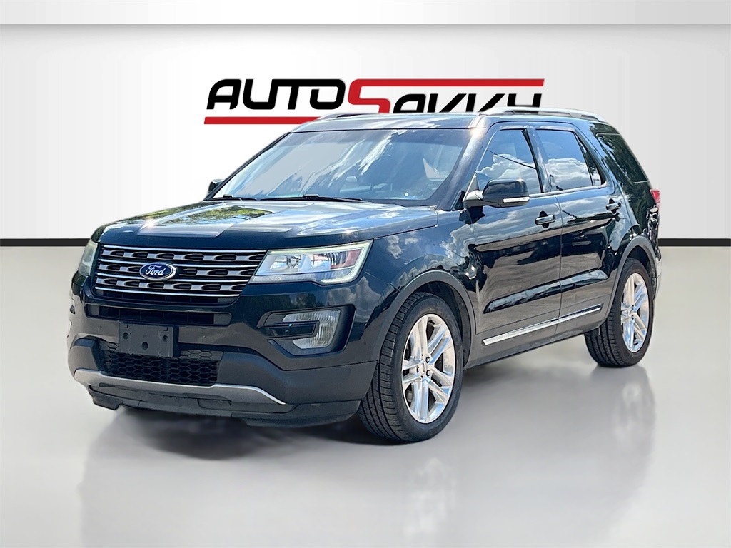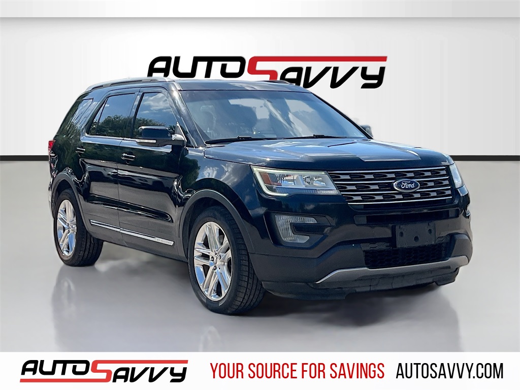 Explore the 2017 Ford Explorer XLT FWD at AutoSavvy Houston Northwest, a perfect blend of power, comfort, and technology. This Shadow Black utility vehicle is powered by a robust 3.5L V-6 DOHC engine, delivering a dynamic 290 horsepower for a thrilling drive. The Explorer XLT offers a spacious interior with leather front seat upholstery in Medium Light Camel, ensuring a luxurious ride for up to seven passengers with its third-row seating. Stay connected and entertained with features like the SYN