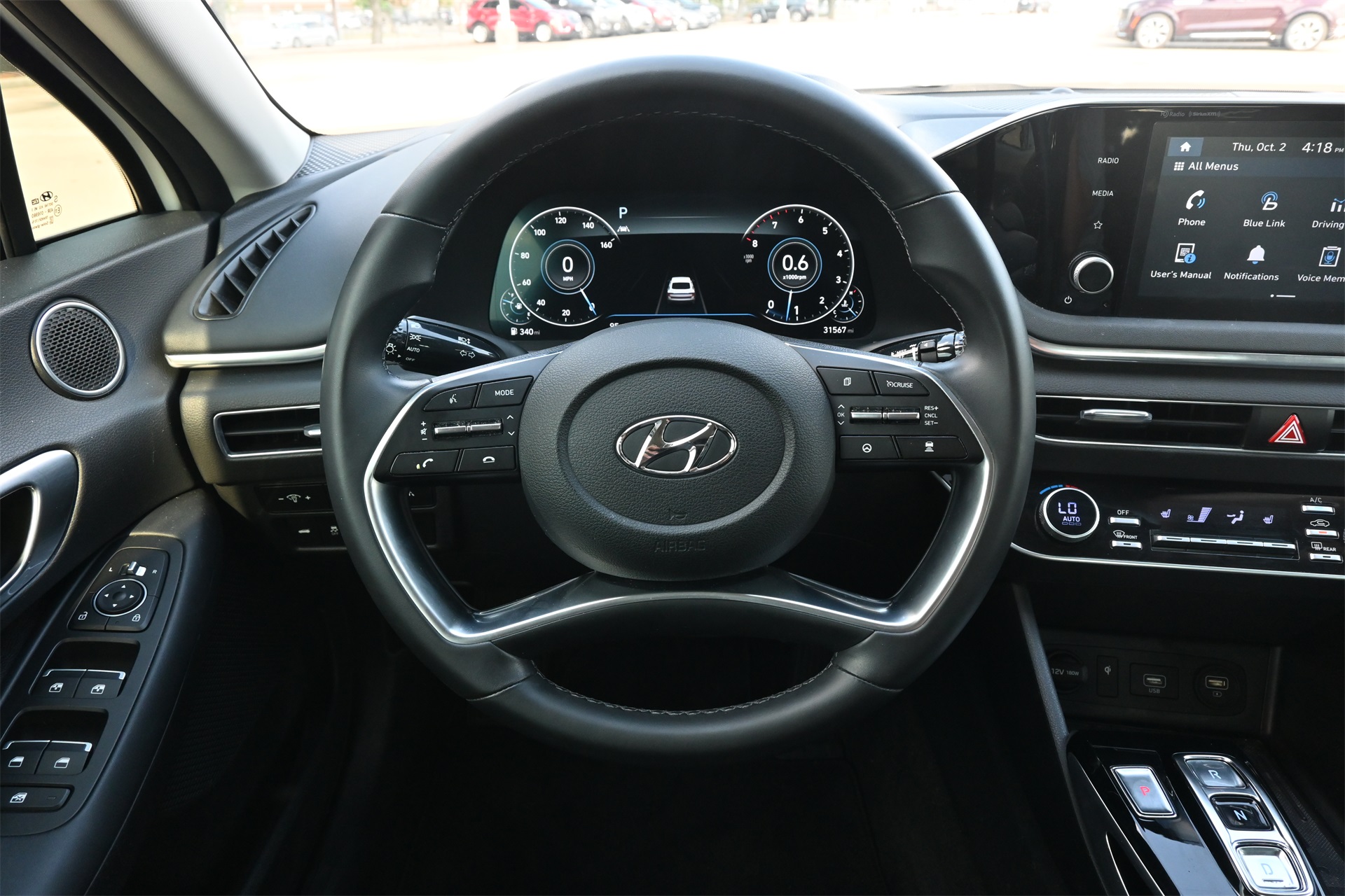 This 2020 Hyundai Sonata SEL is loaded with the following Factory Options:Blue Link Connected Care & Remote Package, Convenience Package (12.3" LCD Instrument Cluster, 2nd Row Air Vent, 2nd Row USB Charge Port, Auto-Dimming Rearview Mirror w/HomeLink, Hyundai Digital Key, Leather-Wrapped Steering Wheel, Option Group 02, and Wireless Phone Charging), Black Cloth, 4-Wheel Disc Brakes, 6 Speakers, ABS brakes, Air Conditioning, Alloy wheels, AM/FM radio: SiriusXM, Apple CarPlay & Android Auto, Auto