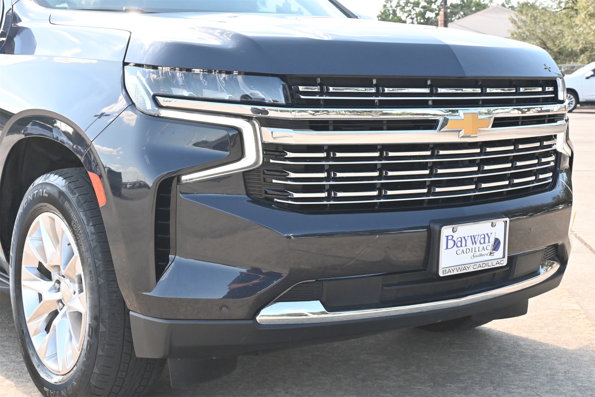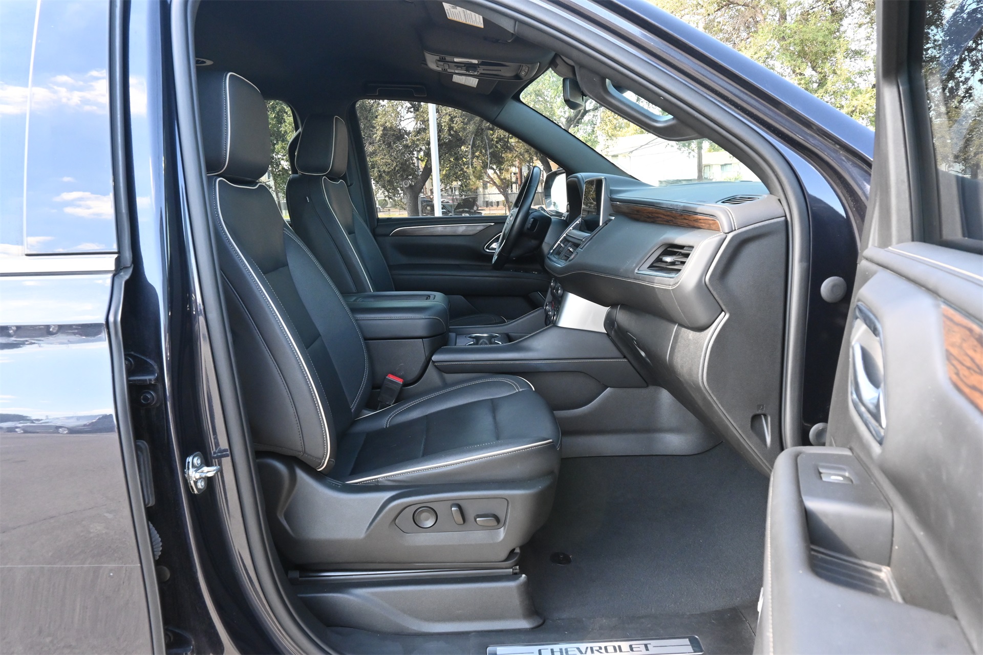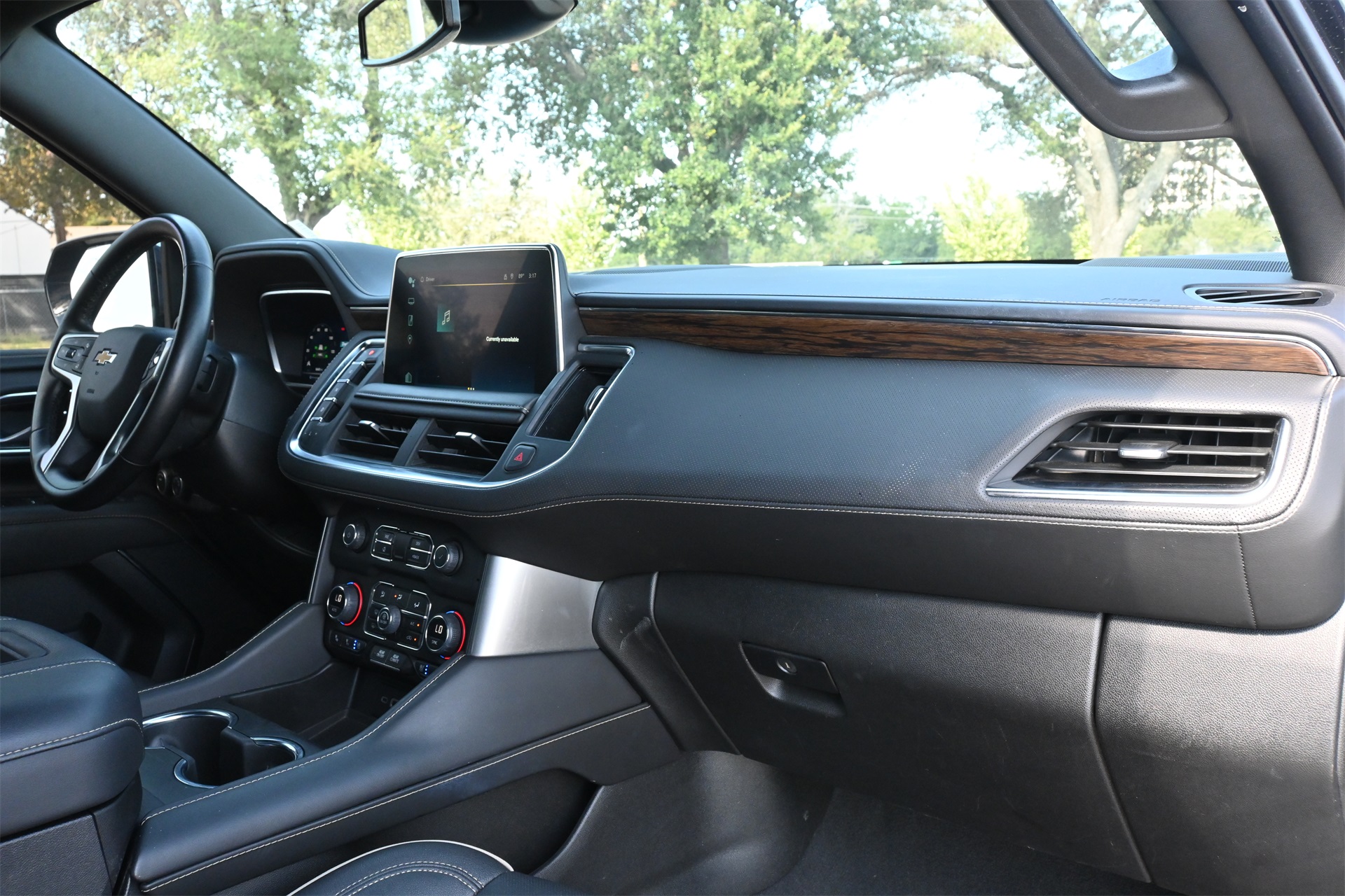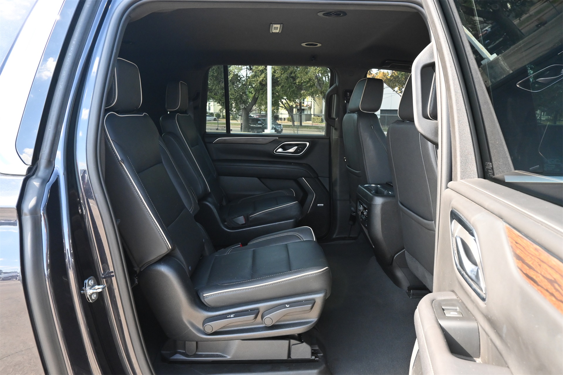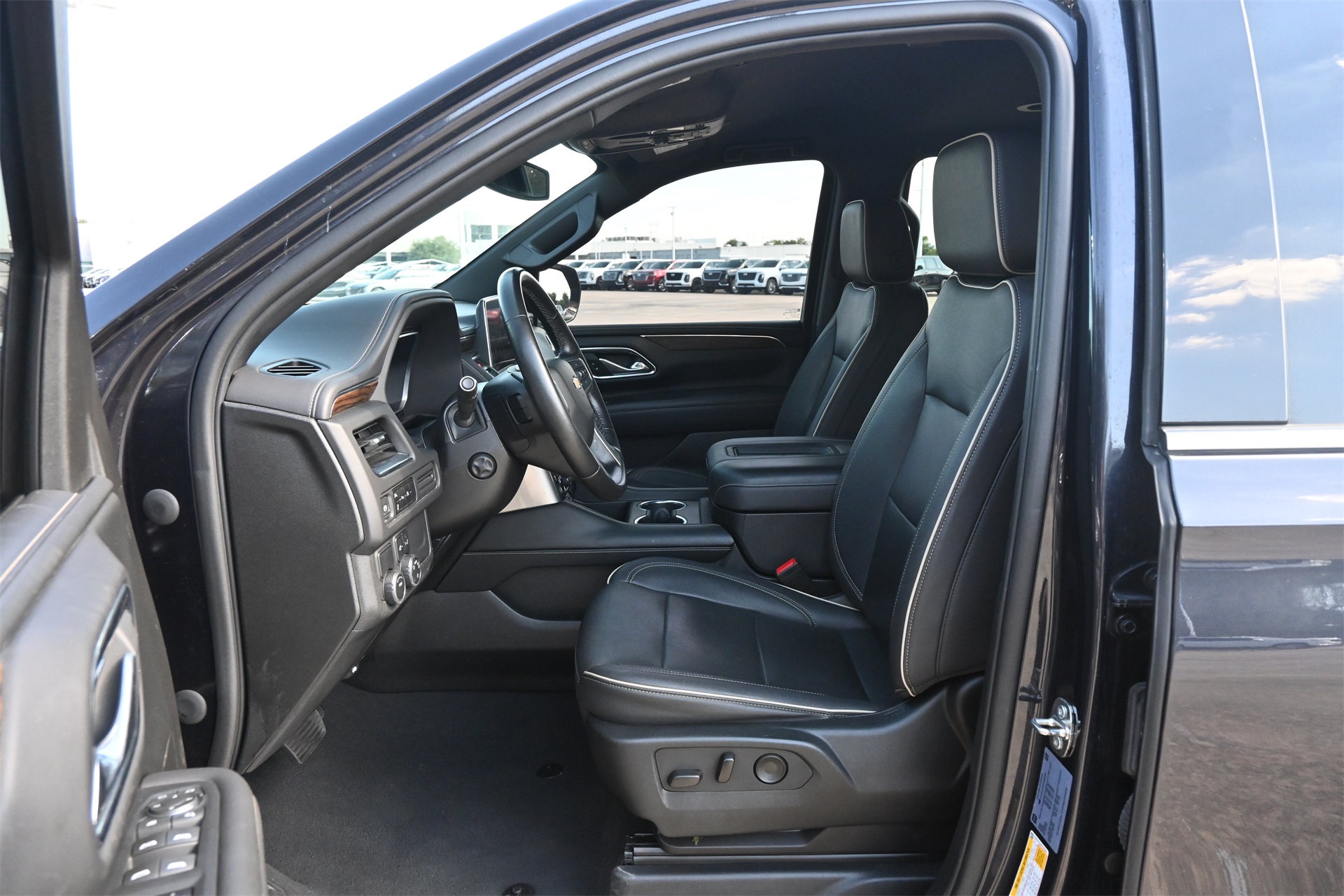 rror, Auto-dimming Rear-View mirror, Auto-leveling suspension, Automatic temperature control, Bose 10-Speaker Surround w/CenterPoint, Brake assist, Bright Front & Rear Door Sill Plates, Bumpers: body-color, Chrome Door Handles w/Body-Color Strip, Chrome Mirror Caps, Color-Keyed Carpeting Floor Covering, Compass, Delay-off headlights, Driver & Front Outboard Passenger Airbags, Driver door bin, Driver vanity mirror, Dual Exhaust System, Dual front impact airbags, Dual front side impact airbags, Electronic Stability Control, Emergency communication system: OnStar and Chevrolet connected services capable, Enhanced Driver Information Center, Floor Console, Four wheel independent suspension, Front anti-roll bar, Front Bucket Seats, Front Center Armrest, Front dual zone A/C, Front reading lights, Fully automatic headlights, Garage door transmitter, Hands-Free Rear Power Programmable Liftgate, Heated & Ventilated Driver & Front Passenger Seats, Heated 2nd Row Outboard Seats, Heated door mirrors, Heated Driver & Front Passenger Seats, Heated front seats, Heated rear seats, Heated Steering Wheel, Heated steering wheel, Illuminated entry, Infotainment Display, Lane Change Alert w/Side Blind Zone Alert, LED Daytime Running Lamps, Low tire pressure warning, Magnetic Ride Control Suspension, Memory seat, Memory Settings, Navigation System, Occupant sensing airbag, Outside Heated Power-Adjustable Mirrors, Outside temperature display, Overhead airbag, Overhead console, Panic alarm, Passenger door bin, Passenger vanity mirror, Perforated Leather Seating Surfaces, Power door mirrors, Power driver seat, Power Liftgate, Power passenger seat, Power Release 2nd Row Bucket Seats, Power steering, Power Tilt & Telescopic Steering Column, Power windows, Premium audio system: Chevrolet Infotainment 3 Premium, Radio: Chevrolet Infotainment 3 Premium System, Rain sensing wipers, Rear air conditioning, Rear anti-roll bar, Rear Cross Traffic Alert, Rear reading lights, Rear window defroster, Rear window wiper, Remote keyless entry, Remote Start, Roof rack: rails only, Safety Alert Seat, Security system, SiriusXM Radio w/360L, Speed control, Speed-sensing steering, Split folding rear seat, Spoiler, Steering wheel memory, Steering wheel mounted audio controls, Tachometer, Telescoping steering wheel, Tilt steering wheel, Traction control, Trip computer, Turn signal indicator mirrors, Universal Home Remote, Variably intermittent wipers, Ventilated front seats, Voltmeter, Wireless Charging, and Wrapped Steering Wheel. Dark Ash Metallic RWD 10-Speed Automatic with Overdrive EcoTec3 5.3L V8 CARFAX 1-Owner, Clean CARFAX!, Non-Smoker, Bluetooth, Apple Carplay / Android Auto, Heated Seats, Cooled Seats.