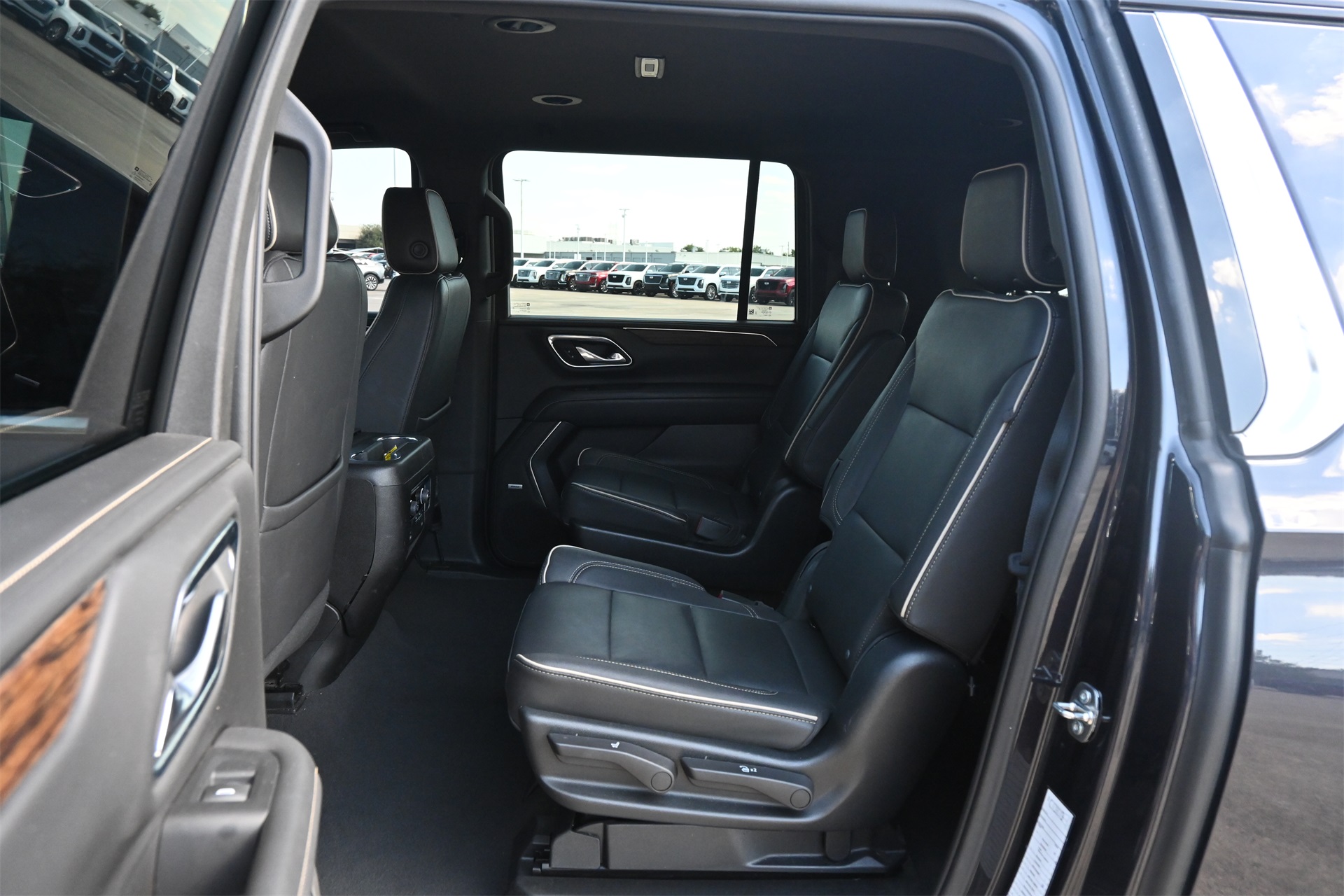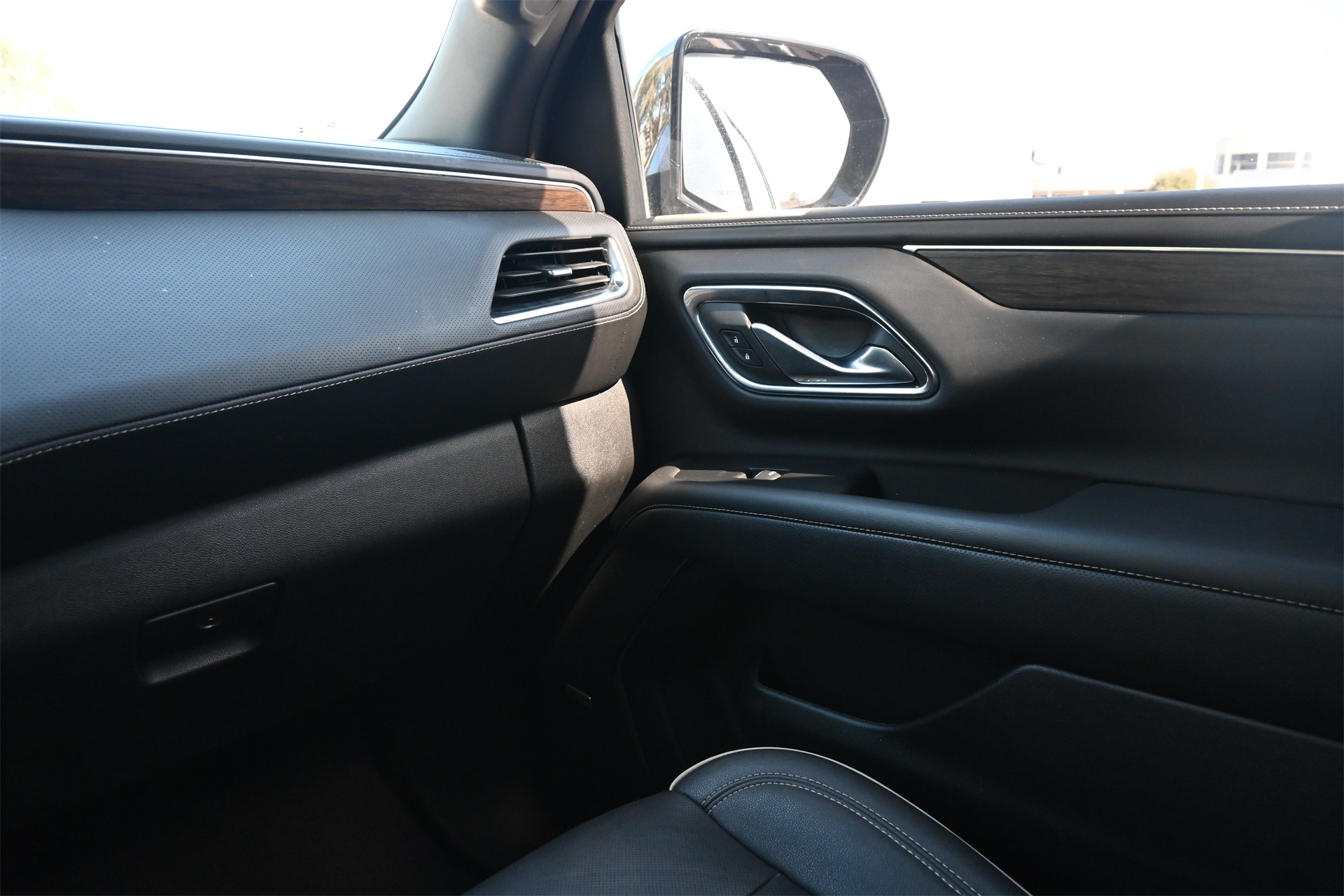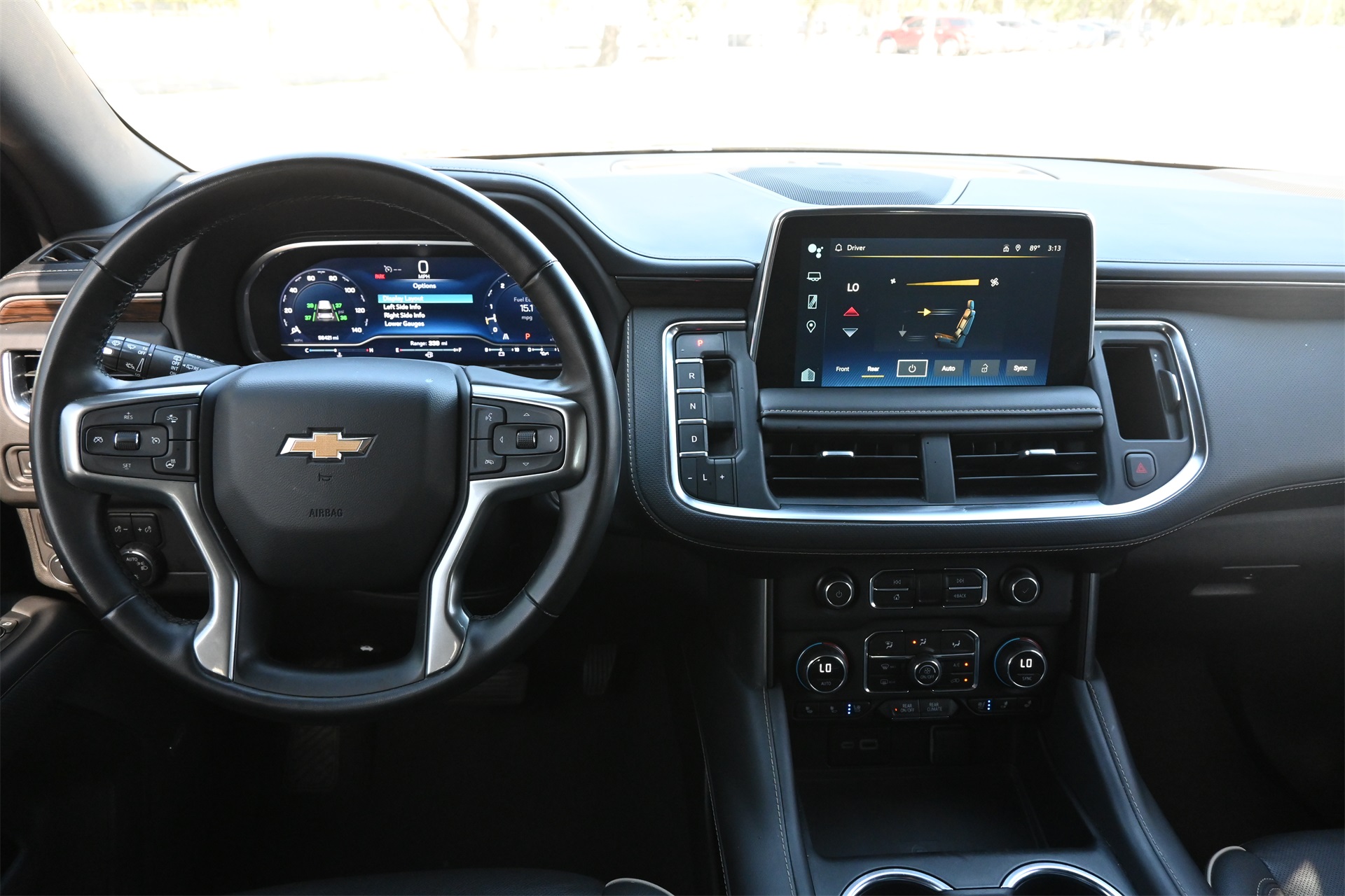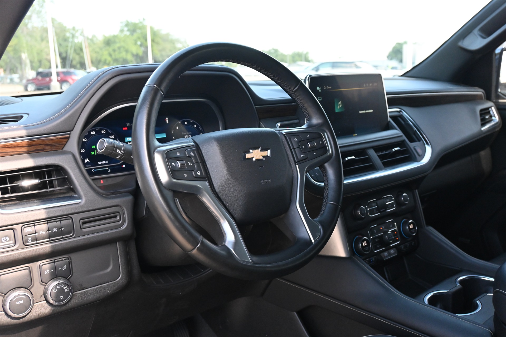rror, Auto-dimming Rear-View mirror, Auto-leveling suspension, Automatic temperature control, Bose 10-Speaker Surround w/CenterPoint, Brake assist, Bright Front & Rear Door Sill Plates, Bumpers: body-color, Chrome Door Handles w/Body-Color Strip, Chrome Mirror Caps, Color-Keyed Carpeting Floor Covering, Compass, Delay-off headlights, Driver & Front Outboard Passenger Airbags, Driver door bin, Driver vanity mirror, Dual Exhaust System, Dual front impact airbags, Dual front side impact airbags, Electronic Stability Control, Emergency communication system: OnStar and Chevrolet connected services capable, Enhanced Driver Information Center, Floor Console, Four wheel independent suspension, Front anti-roll bar, Front Bucket Seats, Front Center Armrest, Front dual zone A/C, Front reading lights, Fully automatic headlights, Garage door transmitter, Hands-Free Rear Power Programmable Liftgate, Heated & Ventilated Driver & Front Passenger Seats, Heated 2nd Row Outboard Seats, Heated door mirrors, Heated Driver & Front Passenger Seats, Heated front seats, Heated rear seats, Heated Steering Wheel, Heated steering wheel, Illuminated entry, Infotainment Display, Lane Change Alert w/Side Blind Zone Alert, LED Daytime Running Lamps, Low tire pressure warning, Magnetic Ride Control Suspension, Memory seat, Memory Settings, Navigation System, Occupant sensing airbag, Outside Heated Power-Adjustable Mirrors, Outside temperature display, Overhead airbag, Overhead console, Panic alarm, Passenger door bin, Passenger vanity mirror, Perforated Leather Seating Surfaces, Power door mirrors, Power driver seat, Power Liftgate, Power passenger seat, Power Release 2nd Row Bucket Seats, Power steering, Power Tilt & Telescopic Steering Column, Power windows, Premium audio system: Chevrolet Infotainment 3 Premium, Radio: Chevrolet Infotainment 3 Premium System, Rain sensing wipers, Rear air conditioning, Rear anti-roll bar, Rear Cross Traffic Alert, Rear reading lights, Rear window defroster, Rear window wiper, Remote keyless entry, Remote Start, Roof rack: rails only, Safety Alert Seat, Security system, SiriusXM Radio w/360L, Speed control, Speed-sensing steering, Split folding rear seat, Spoiler, Steering wheel memory, Steering wheel mounted audio controls, Tachometer, Telescoping steering wheel, Tilt steering wheel, Traction control, Trip computer, Turn signal indicator mirrors, Universal Home Remote, Variably intermittent wipers, Ventilated front seats, Voltmeter, Wireless Charging, and Wrapped Steering Wheel. Dark Ash Metallic RWD 10-Speed Automatic with Overdrive EcoTec3 5.3L V8 CARFAX 1-Owner, Clean CARFAX!, Non-Smoker, Bluetooth, Apple Carplay / Android Auto, Heated Seats, Cooled Seats.