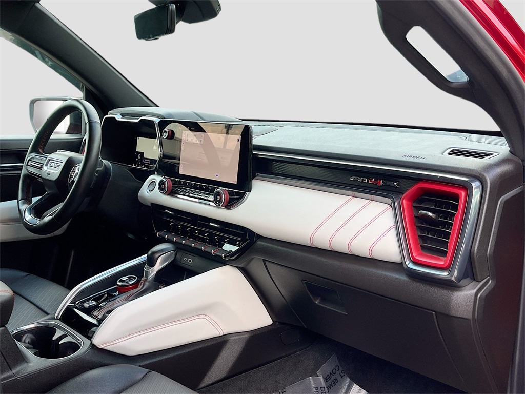 Discover the rugged elegance of the 2023 GMC Canyon 4WD Crew Cab AT4X, available at AutoSavvy Houston Northwest. This striking pickup boasts a Volcanic Red Tintcoat exterior paired with a luxurious Obsidian Rush leather interior. With only 11,020 miles on the odometer, this low-mileage vehicle is ready for adventure. Under the hood, a robust 2.7L I-4 turbocharged engine delivers an impressive 310 horsepower, complemented by an 8-speed automatic transmission for a smooth and powerful drive. Enjoy