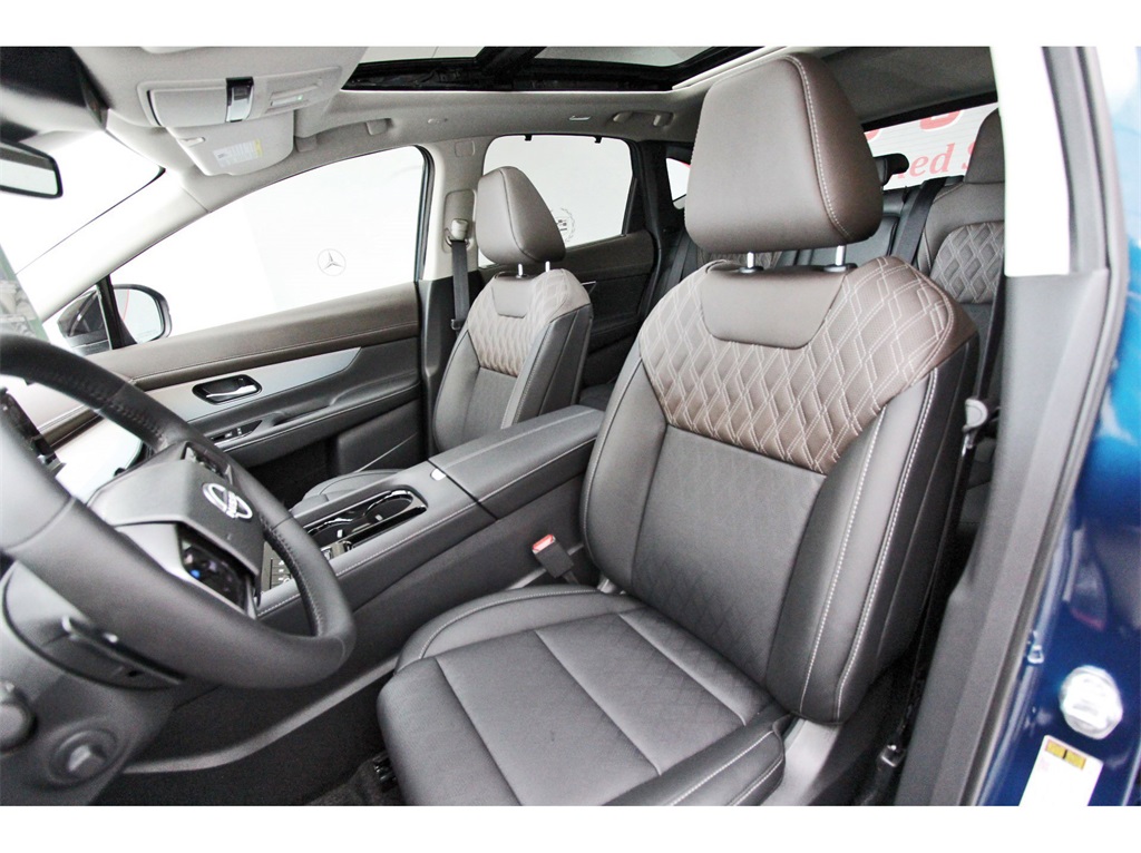 ld-Seat-Sensing Airbag, Compass, Delay-off headlights, Driver door bin, Driver vanity mirror, Dual front impact airbags, Dual front side impact airbags, Electronic Stability Control, Emergency communication system: NissanConnect Services, Four wheel independent suspension, Front anti-roll bar, Front Bucket Seats, Front Center Armrest, Front dual zone A/C, Front reading lights, Fully automatic headlights, Garage door transmitter: HomeLink, Heads-Up Display, Heated & Ventilated Front Bucket Seats w/Massage, Heated door mirrors, Heated front seats, Heated rear seats, Heated steering wheel, Illuminated entry, Knee airbag, Low tire pressure warning, Memory seat, Navigation system: NissanConnect with Navigation and Services, Occupant sensing airbag, Outside temperature display, Overhead airbag, Overhead console, Panic alarm, Passenger door bin, Passenger vanity mirror, Power door mirrors, Power driver seat, Power Liftgate, Power moonroof: Panoramic, Power passenger seat, Power steering, Power windows, Quilted Semi-Aniline Leather-Appointed Seat Trim, Radio data system, Radio: NissanConnect w/Hybrid Radio, Rain sensing wipers, Rear anti-roll bar, Rear reading lights, Rear seat center armrest, Rear side impact airbag, Rear window defroster, Rear window wiper, Remote keyless entry, Security system, Speed control, Speed-Sensitive Wipers, Split folding rear seat, Spoiler, Steering wheel memory, Steering wheel mounted audio controls, Tachometer, Telescoping steering wheel, Tilt steering wheel, Traction control, Trip computer, Turn signal indicator mirrors, Variably intermittent wipers, Ventilated front seats, and Wireless Apple CarPlay/Wireless Android Auto!!