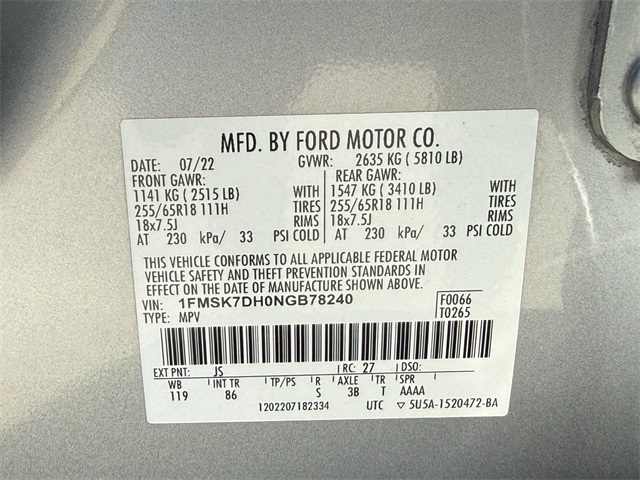 1FMSK7DH0NGB78240Stock #