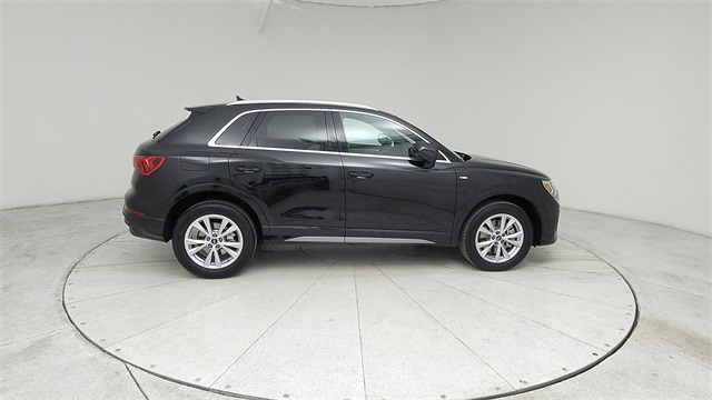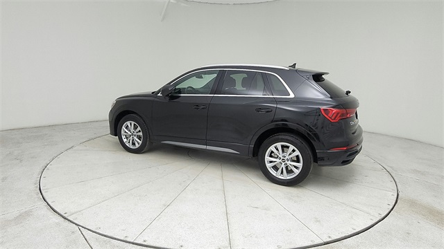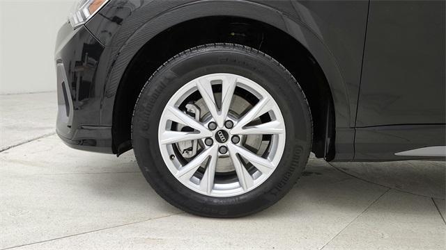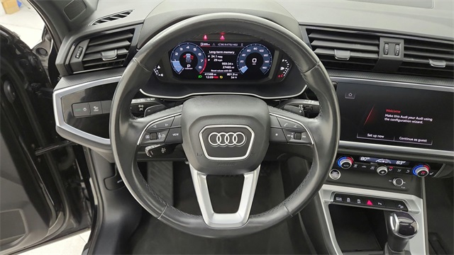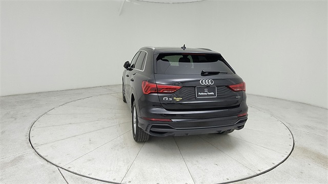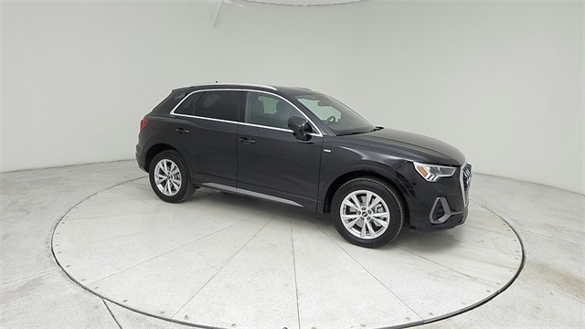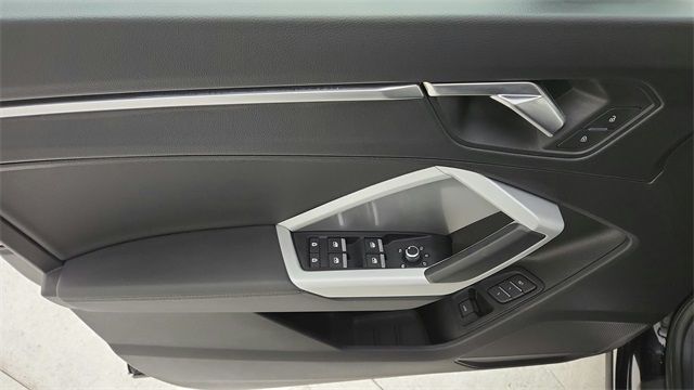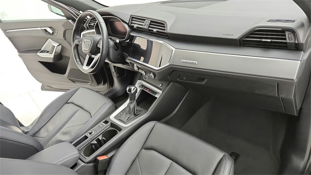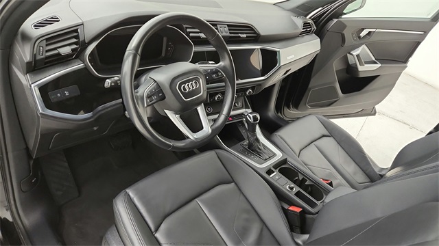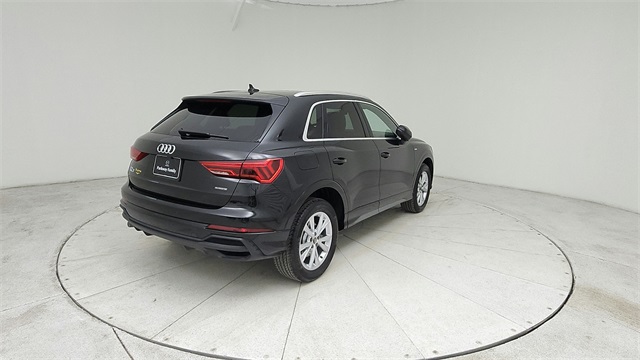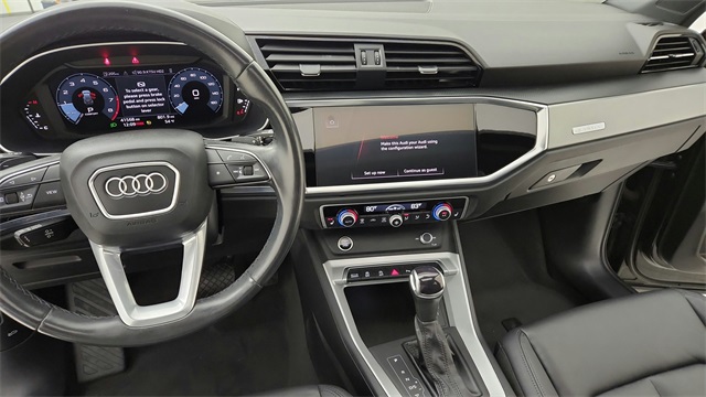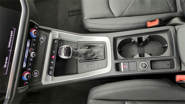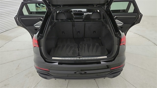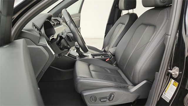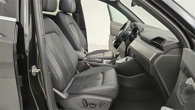 This 2023 Audi Q3 Premium S Line quattro in Black comes with the following features: 2.0L 4-Cylinder TFSI 8-Speed Automatic with Tiptronic quattro 10 Speakers, 3.533 Axle Ratio, 4-Wheel Disc Brakes, ABS brakes, Air Conditioning, Alloy wheels, AM/FM radio, Audi smartphone interface (Apple CarPlay/Android Auto), Auto High-beam Headlights, Automatic temperature control, Brake assist, Bumpers: body-color, Delay-off headlights, Driver door bin, Driver vanity mirror, Dual front impact airbags, Dual front side impact airbags, Electronic Stability Control, Emergency communication system: Audi connect CARE, Exterior Parking Camera Rear, Four wheel independent suspension, Front anti-roll bar, Front Bucket Seats, Front Center Armrest, Front dual zone A/C, Front fog lights, Front reading lights, Fully automatic headlights, Heated door mirrors, Heated Front Bucket Seats, Heated front seats, Illuminated entry, Knee airbag, Leather Seating Surfaces, Leather Shift Knob, Leather steering wheel, Low tire pressure warning, Occupant sensing airbag, Outside temperature display, Overhead airbag, Overhead console, Panic alarm, Passenger door bin, Passenger vanity mirror, Power door mirrors, Power driver seat, Power Liftgate, Power moonroof: Panoramic, Power passenger seat, Power steering, Power windows, Radio data system, Radio: Audi Sound System, Rain sensing wipers, Rear air conditioning, Rear anti-roll bar, Rear fog lights, Rear reading lights, Rear seat center armrest, Rear window defroster, Rear window wiper, Remote keyless entry, Speed control, Speed-sensing steering, Split folding rear seat, Spoiler, Steering wheel mounted audio controls, Tachometer, Telescoping steering wheel, Tilt steering wheel, Traction control, Trip computer, Turn signal indicator mirrors, Variably intermittent wipers, and Wheels: 18" 5-V-Spoke-S Design.