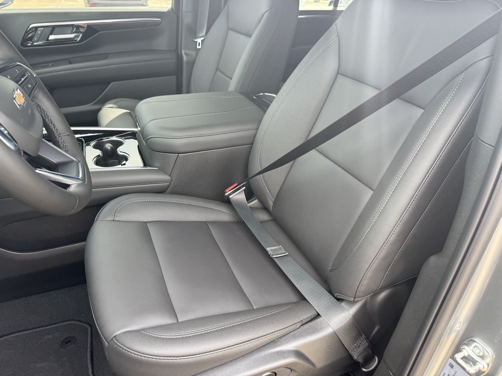 th CenterPoint, (DXR) outside heated power-adjustable, power-folding, body-color mirrors with driver-side auto-dimming and integrated turn signal indicators, (KI3) heated steering wheel, (KA6) second row outboard heated seats, (ATT) second row power 60/40 split-folding bench seats, (AS8) third row power 60/40 split-folding bench seats, (TGE) LED animated headlamps and (TAU) LED animated tail lamps (Also includes (WPL) Luxury Package content. WHEELS, 20 X 9 (50.8 CM X 22.9 CM) MACHINED ALUMINUM WIT CHARCOAL POCKETS, SEATS, SECOND ROW BUCKET, POWER RELEASE, ENGINE, 5.3L ECOTEC3 V8 with Dynamic Fuel Management, Direct Injection and Variable Valve Timing, includes aluminum block construction (355 hp [265 kW] @ 5600 rpm, 383 lb-ft of torque [518 Nm] @ 4100 rpm) (STD), TRANSMISSION, 10-SPEED AUTOMATIC electronically controlled with overdrive, includes Traction Select System including tow/haul (STD), AUDIO SYSTEM, 17.7 DIAGONAL ADVANCED COLOR LCD DISPLAY with Google built-in compatibility (select service plan required, terms and limitations apply), including navigation capability, connected apps, personalized profiles for each drivers settings, Natural Voice Recognition and Phone Integration (STD), LUXURY PACKAGE includes (DD8) Inside rearview auto-dimming mirror, (UG1) Universal Home Remote and (T40) LED front fog lamps, ADVANCED TRAILERING PACKAGE includes (UKW) Blind Zone Steering Assist with Trailering, (PZ8) Hitch View and (UET) Smart Trailer Integration Indicator. Chevrolet LT with Sterling Gray Metallic exterior and Jet Black interior features a 8 Cylinder Engine with 355 HP at 5600 RPM*.