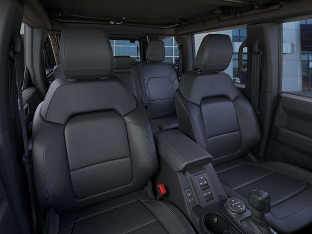 - Back Side of Center Floor Console, Radio: B&O Sound System by Bang & Olufsen, Rear Parking Sensors, Sideview Mirrors, and Universal Garage Door Opener), Sasquatch Package (High Clearance Fender Flares, High Clearance Suspension, Position-Sensitive Bilstein Shock Absorbers, and Wheels: 17" Carbonized Gray Painted Aluminum), 4-Wheel Disc Brakes, 7 Speakers, ABS brakes, Air Conditioning, Alloy wheels, AM/FM radio: SiriusXM with 360L, AM/FM Stereo, Auto High-Beam Headlamps, Auto High-beam Headlights, Auto-dimming Rear-View mirror, BLIS Blind Spot Information System, Brake assist, Carbonized Gray Molded-In-Color Hard Top, Compass, Delay-off headlights, Driver door bin, Driver vanity mirror, Dual front impact airbags, Dual front side impact airbags, Electronic Stability Control, Emergency communication system: 911 Assist, Exterior Parking Camera Rear, Front anti-roll bar, Front Bucket Seats, Front Center Armrest, Front fog lights, Front License Plate Bracket, Front reading lights, Front wheel independent suspension, Fully automatic headlights, Hard Top Sound Deadening Headliner, Heated door mirrors, Heated front seats, Heated steering wheel, Illuminated entry, Integrated roll-over protection, Lane-Keeping System, Leather Shift Knob, Low tire pressure warning, Marine Grade Vinyl Heated Bucket Seats, Occupant sensing airbag, Outside temperature display, Overhead airbag, Overhead console, Panic alarm, Passenger door bin, Passenger vanity mirror, Power door mirrors, Power steering, Power windows, Pre-Collision Assist w/Automatic Emergency Braking, Radio data system, Rear-View Camera, Rear-Window Defroster & Washer, Remote keyless entry, Security system, SiriusXM w/360L, Speed control, Split folding rear seat, Steering wheel mounted audio controls, SYNC 4, Tachometer, Telescoping steering wheel, Tilt steering wheel, Traction control, Trip computer, Variably intermittent wipers, Voltmeter, and Wheels: 17" Carbonized Gray-Painted Aluminum. Recent Arrival!