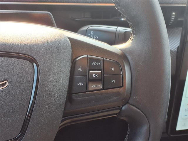 off headlights, Driver door bin, Driver vanity mirror, Dual front impact airbags, Dual front side impact airbags, Electronic Stability Control, Emergency communication system: 911 Assist, Exterior Parking Camera Rear, Four wheel independent suspension, Front anti-roll bar, Front Bucket Seats, Front Center Armrest, Front dual zone A/C, Front License Plate Bracket, Front reading lights, Fully automatic headlights, Garage door transmitter, Heated door mirrors, Heated front seats, Heated steering wheel, Heated/Ventilated Perforated ActiveX Bucket Seats, Illuminated entry, Knee airbag, Low tire pressure warning, Memory seat, Mobile Power Cord (120V/240V), Navigation system: Connected Navigation, Occupant sensing airbag, Outside temperature display, Overhead airbag, Overhead console, Panic alarm, Passenger door bin, Passenger vanity mirror, Power door mirrors, Power driver seat, Power Liftgate, Power passenger seat, Power steering, Power windows, Radio data system, Radio: B&O Sound System by Bang & Olufsen, Rain sensing wipers, Rear anti-roll bar, Rear seat center armrest, Rear side impact airbag, Rear window defroster, Rear window wiper, Remote keyless entry, Security system, SiriusXM w/360L, Speed control, Speed-sensing steering, Speed-Sensitive Wipers, Split folding rear seat, Spoiler, Steering wheel mounted audio controls, SYNC 4A w/Enhanced Voice Recognition, Telescoping steering wheel, Tilt steering wheel, Traction control, Trip computer, Turn signal indicator mirrors, Variably intermittent wipers, Ventilated front seats, and Wheels: 19" Bright Machined-Face Aluminum.