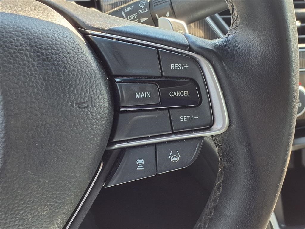 door bin, Driver vanity mirror, Dual front impact airbags, Dual front side impact airbags, Electronic Stability Control, Emergency communication system: HondaLink, Exterior Parking Camera Rear, Forward collision: Collision Mitigation Braking System (CMBS) + FCW mitigation, Four wheel independent suspension, Front anti-roll bar, Front Bucket Seats, Front Center Armrest, Front dual zone A/C, Front fog lights, Front reading lights, Fully automatic headlights, Illuminated entry, Knee airbag, Lane Departure Warning System, Leather Shift Knob, Leather steering wheel, Low tire pressure warning, Occupant sensing airbag, Outside temperature display, Overhead airbag, Overhead console, Panic alarm, Passenger door bin, Passenger vanity mirror, Power door mirrors, Power driver seat, Power steering, Power windows, Radio data system, Radio: 180-Watt AM/FM Audio System, Rear anti-roll bar, Rear seat center armrest, Rear window defroster, Remote keyless entry, Security system, Speed control, Speed-sensing steering, Speed-Sensitive Wipers, Split folding rear seat, Spoiler, Steering wheel mounted audio controls, Tachometer, Telescoping steering wheel, Tilt steering wheel, Traction control, Trip computer, Variably intermittent wipers, and Wheels: 19" Machine-Finished Alloy w/Black Inserts. 29/35 City/Highway MPG