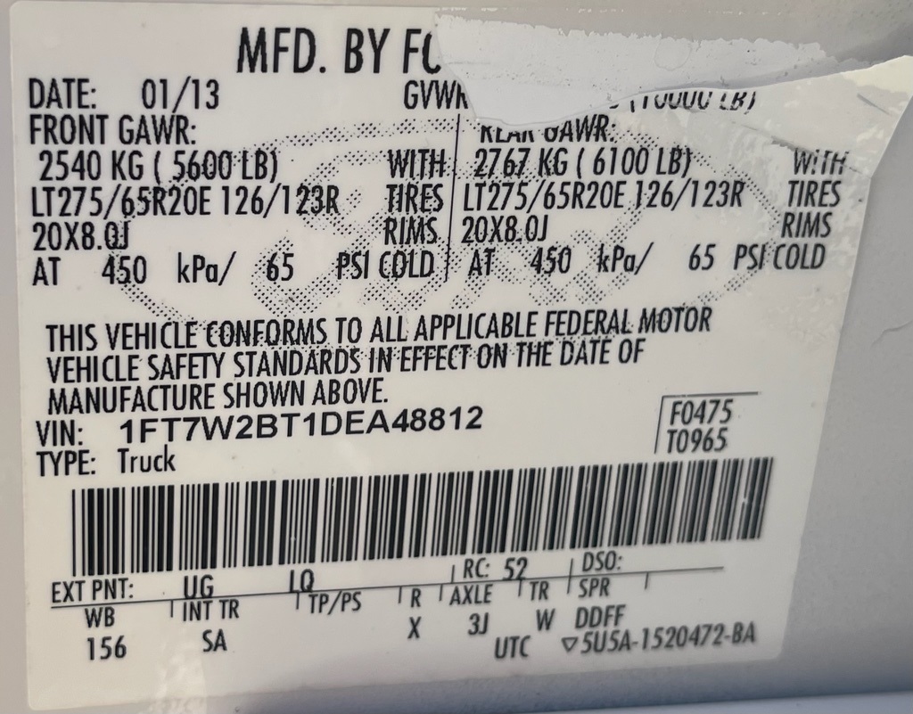 1FT7W2BT1DEA48812Stock #
