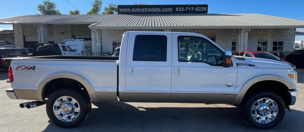 AUTOSTRADE is proud to present you with another True Market Priced Pre-Owned Vehicle. This 2013 Ford F-250SD King Ranch is loaded with the following Factory Options:FX4 Off-Road Package (Colored Front & Rear Rancho Branded Shocks and Hill Descent Control), GVWR: 10,000 lb Payload Package, Heavy Service Front Suspension Package, King Ranch w/Chrome Package (18" Chrome Clad Cast Aluminum Wheels, Navigation System w/HD & Satellite Broadcast, PowerScope Trailer-Tow Mirrors, and Remote Start System), Order Code 608A, 10 Speakers, 18" Bright Machined Cast Alum. 6-Spoke Wheels, 20" Chrome Clad Cast Aluminum Wheels, 3.73 Axle Ratio, 4-Wheel Disc Brakes, ABS brakes, Adjustable pedals, Air Conditioning, Alloy wheels, AM/FM radio: SiriusXM, Auto-dimming Rear-View mirror, Automatic temperature control, Brake assist, Bumpers: chrome, CD player, Compass, Delay-off headlights, Driver door bin, Driver vanity mirror, Dual front impact airbags, Dual front side impact airbags, Electronic Locking w/3.55 Axle Ratio, Electronic Stability Control, Engine Block Heater, Exterior Parking Camera Rear, Extra Heavy-Duty 200-Amp Alternator, Front anti-roll bar, Front Bucket Seats, Front Center Armrest, Front dual zone A/C, Front fog lights, Front reading lights, Fully automatic headlights, Heated door mirrors, Heated Rear Seats, Illuminated entry, Leather steering wheel, Low tire pressure warning, Outside temperature display, Overhead airbag, Overhead console, Panic alarm, Passenger door bin, Passenger vanity mirror, Power door mirrors, Power driver seat, Power Moonroof, Power passenger seat, Power steering, Power windows, Premium audio system: Sony, Premium Leather Seating Surfaces 40/Console/40, Radio data system, Radio: Premium Sony Audio w/Single CD, Rear Parking Sensors, Rear reading lights, Rear seat center armrest, Rear step bumper, Rear window defroster, Remote keyless entry, Security system, SiriusXM Satellite Radio, Speed control, Split folding rear seat, Steering wheel mounted audio controls, Tachometer, Tailgate Step & Handle, Telescoping steering wheel, Tilt steering wheel, Traction control, Trip computer, Turn signal indicator mirrors, Upfitter Switches (4), and Variably intermittent wipers.