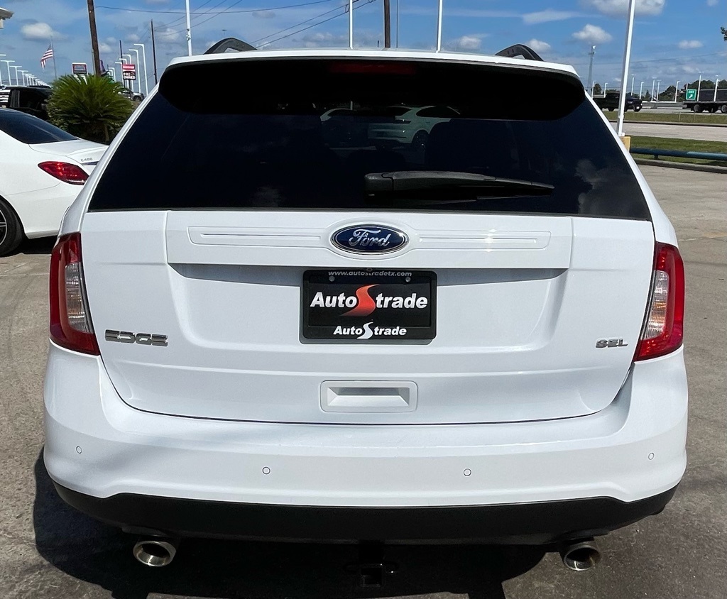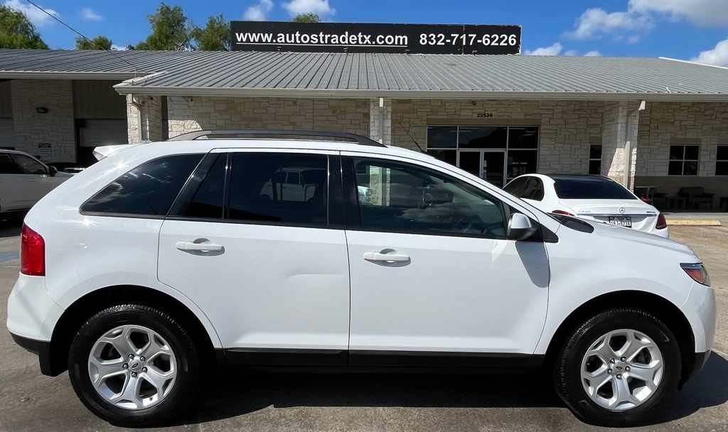 AUTOSTRADE is proud to present you with another True Market Priced Pre-Owned Vehicle. This 2014 Ford Edge SEL is loaded with the following Factory Options:Equipment Group 204A (Rear-View Camera), Leather Comfort Package (Leather-Trimmed Heated Bucket Seats), 18" Painted Aluminum Wheels, 3.16 Axle Ratio, 4-Wheel Disc Brakes, 6 Speakers, ABS brakes, Air Conditioning, Alloy wheels, AM/FM radio: SiriusXM, Auto-dimming Rear-View mirror, Automatic temperature control, Brake assist, Bumpers: body-color, CD player, Compass, Delay-off headlights, Driver door bin, Driver vanity mirror, Dual front impact airbags, Dual front side impact airbags, Electronic Stability Control, Four wheel independent suspension, Front anti-roll bar, Front Bucket Seats, Front Center Armrest w/Storage, Front dual zone A/C, Front License Plate Bracket, Front reading lights, Fully automatic headlights, Heated door mirrors, Illuminated entry, Low tire pressure warning, Occupant sensing airbag, Outside temperature display, Overhead airbag, Overhead console, Panic alarm, Passenger door bin, Passenger vanity mirror, Power door mirrors, Power driver seat, Power steering, Power windows, Radio: AM/FM Stereo w/Single CD/MP3 Capable, Rear anti-roll bar, Rear Parking Sensors, Rear reading lights, Rear seat center armrest, Rear window defroster, Rear window wiper, Remote keyless entry, Roof Rack Side Rails, Speed control, Speed-Sensitive Wipers, Split folding rear seat, Spoiler, Steering wheel mounted audio controls, SYNC w/MyFord Communications/Entertainment System, Tachometer, Telescoping steering wheel, Tilt steering wheel, Traction control, Trip computer, Unique Cloth Bucket Seats, and Variably intermittent wipers.