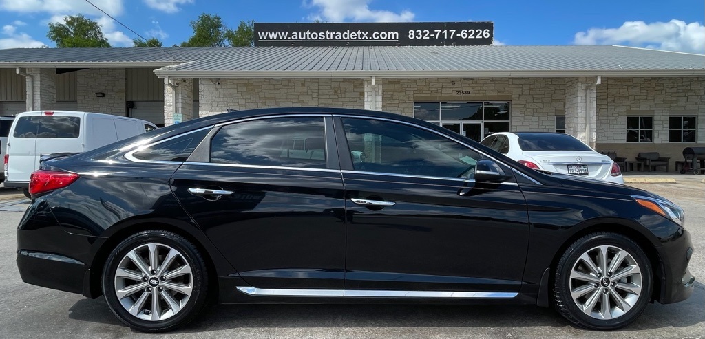 AUTOSTRADE is proud to present you with another True Market Priced Pre-Owned Vehicle. This 2017 Hyundai Sonata Limited is loaded with the following Factory Options:Tech Package 03, 4-Wheel Disc Brakes, 4.2-inch Color LCD Multi-Info Display, 6 Speakers, ABS brakes, Air Conditioning, Alloy wheels, AM/FM radio: SiriusXM, Apple CarPlay & Android Auto, Auto-dimming Rear-View mirror, Automatic temperature control, Brake assist, Bumpers: body-color, Carpeted Floor Mats, CD player, Compass, Delay-off headlights, Driver door bin, Driver vanity mirror, Dual front impact airbags, Dual front side impact airbags, Dynamic Bending Light (DBL), Electronic Stability Control, Emergency communication system: Blue Link, Exterior Parking Camera Rear, First Aid Kit, Four wheel independent suspension, Front anti-roll bar, Front Bucket Seats, Front Center Armrest, Front dual zone A/C, Front reading lights, Fully automatic headlights, Garage door transmitter: HomeLink, Heated door mirrors, Heated Front Bucket Seats, Heated front seats, Heated Rear Seats, Heated/Ventilated Front Bucket Seats, High-Intensity Discharge Xenon Headlights, Illuminated entry, Integrated Memory System (IMS), Knee airbag, Leather Seating Surfaces, Leather Shift Knob, Leather steering wheel, LED Interior Lights, Low tire pressure warning, Mud Guards, Occupant sensing airbag, Outside temperature display, Overhead airbag, Overhead console, Panic alarm, Passenger door bin, Passenger vanity mirror, Power door mirrors, Power driver seat, Power moonroof, Power passenger seat, Power steering, Power windows, Radio: AM/FM/SiriusXM/CD/MP3 Display Audio, Radio: AM/FM/SiriusXM/CD/MP3 w/Navigation, Rear anti-roll bar, Rear Bumper Applique, Rear seat center armrest, Rear Side Window Sunshades, Rear window defroster, Remote keyless entry, Security system, SiriusXM Travel Link (Complimentary Trial), Speed control, Speed-sensing steering, Speed-Sensitive Wipers, Split folding rear seat, Spoiler, Steering wheel mounted audio controls, Tachometer, Telescoping steering wheel, Tilt steering wheel, Traction control, Trip computer, Turn signal indicator mirrors, Variably intermittent wipers, and Wheels: 17 x 7.0J Aluminum Alloy.